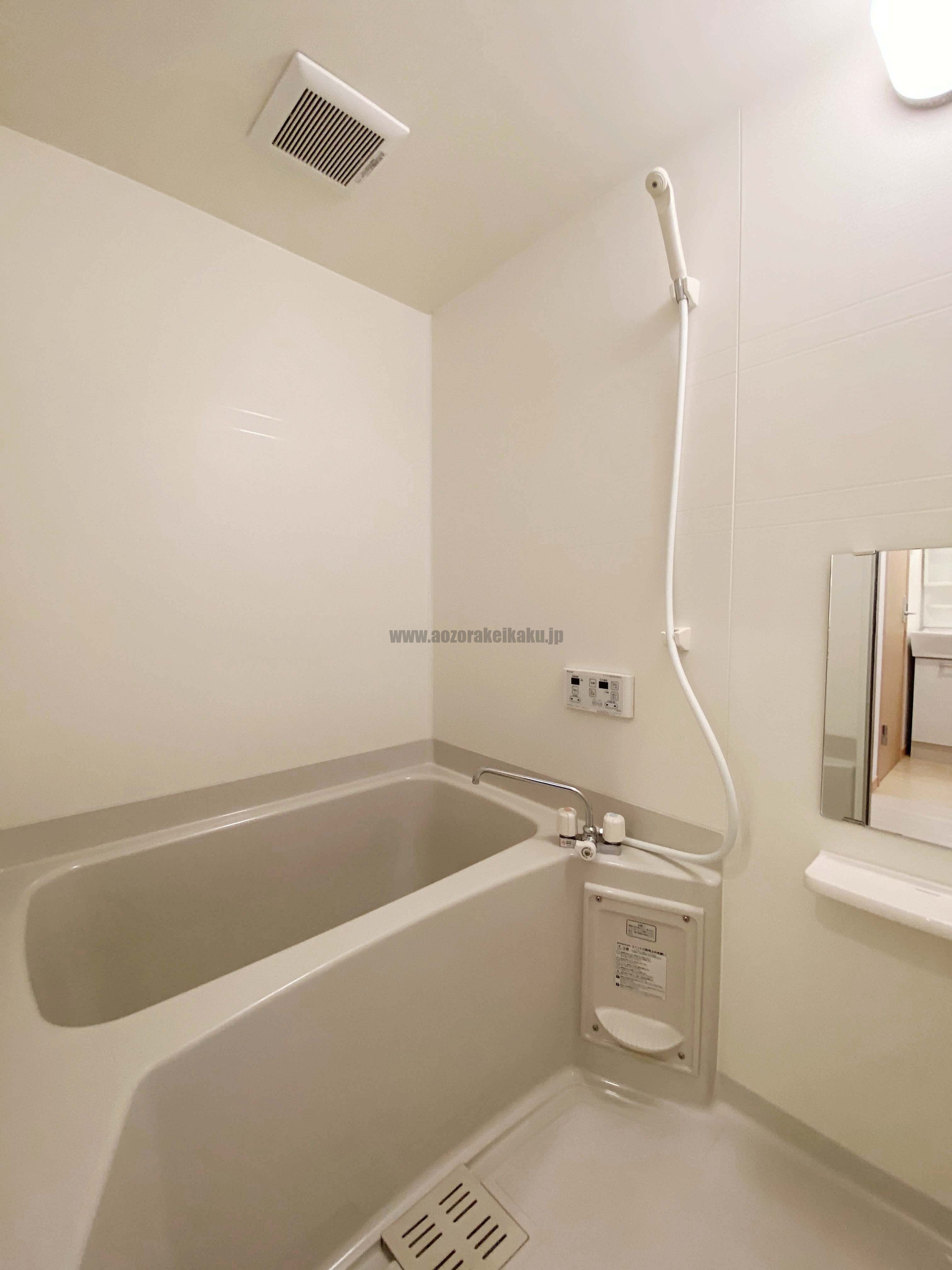 | 設備 | 公営水道、公共下水、都市ガス、給湯、追焚バス、シャワー、独立洗面室、洗面化粧台、温水洗浄便座、TVドアホン、BS、エアコン、クローゼット、シューズボックス、ガスコンロ設置可、バルコニー、インターネット無料 [共用部]駐車場、駐輪場、専用ゴミ捨て場 |